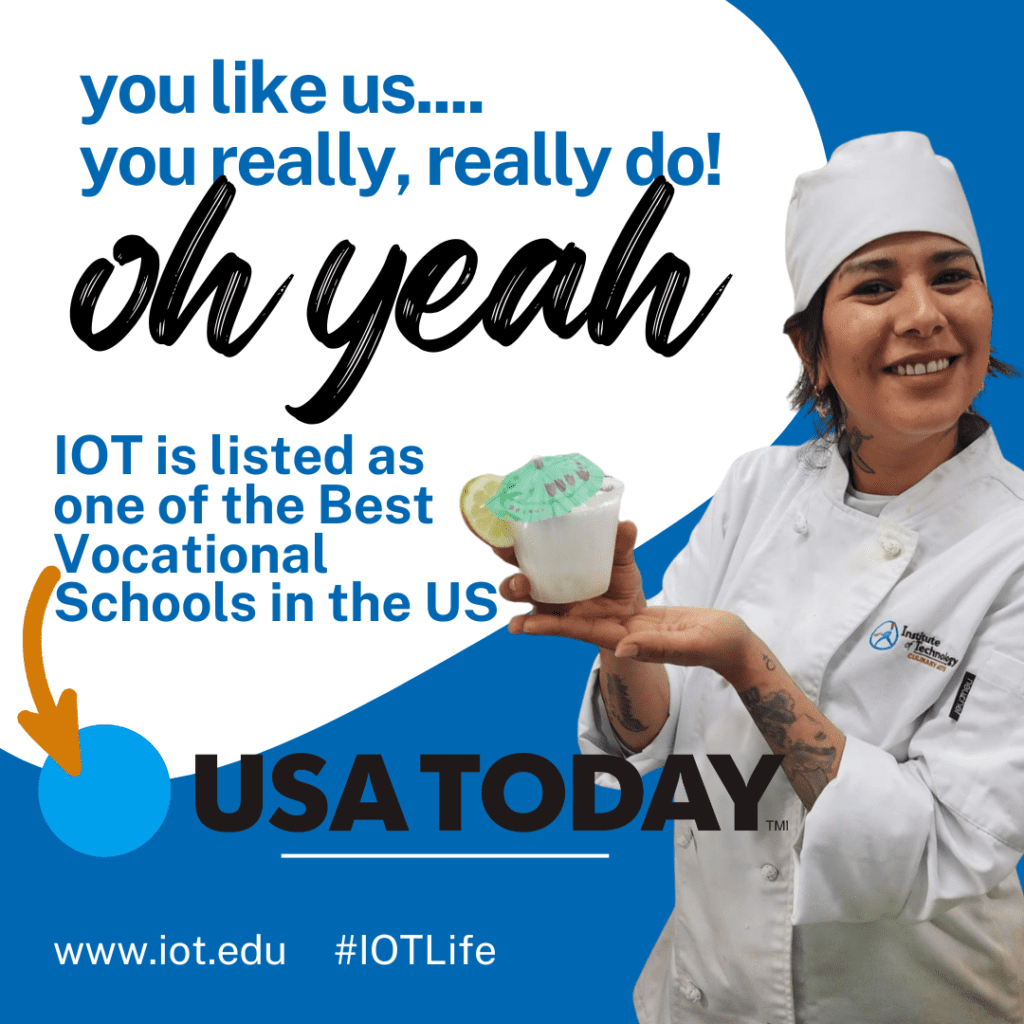 The people you meet at IOT make the experience. You will find so many different types of people who are all getting started in the food industry, just like you. The Chefs expect a lot from you because they know what you’re capable of. Every Chef cares about your culinary journey. My experience at IOT was nothing but great memories and knowledge I’ll carry with me.”